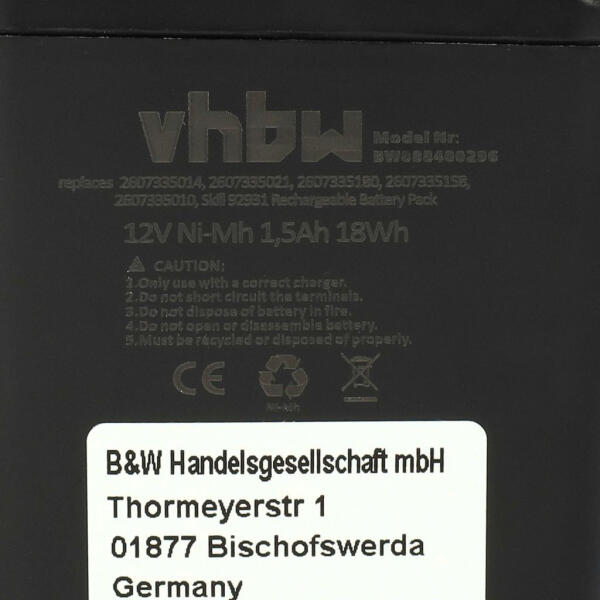 VHBW Elektromos kéziszerszámgép akkumulátor Bosch GBM 12VE, ORGAPACK OR-T50, Signode BHC2300 eszközökhöz - 12V, Ni-MH, 1500mAh (888400296)