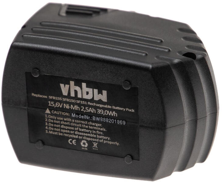 Gyártó: VHBW; Szín: fekete; Méretek (H x Sz x Ma): 13 x 9,3 x 7 cm; Technológia: NiMH; Kapacitás: 2500 mAh; Feszültség: 15,6 V; Névleges energia: 39 Wh; Cellák száma: 13; Szállítás tartalma: 1x akkumulátor Kompatibilis eszközök: Hilti SF150, Hilti SF150-A, Hilti SF150A, Hilti SF151, Hilti SF151-A, Hilti SF151A, Hilti SFH151, Hilti SFH 151-A Hilti SFB150, Hilti SFB155