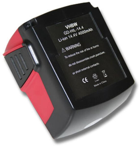 Gyártó: VHBW; Szín: fekete / piros; Méretek (H x Sz x Ma): 10,8 x 9,9 x 9,1 cm; Technológia: Li-Ion - nincs memóriaeffektus; Kapacitás: 4000 mAh; Feszültség: 14,4 V; Névleges energia: 57,6 Wh; Cellák száma: 4; Szállítás tartalma: 1x USB programozó kábel Kompatibilis eszközök: Hilti SF144-A, Hilti SF 144-A CPC 14.4 V, Hilti SFH 144-A, Hilti SFH 144-A CPC 14.4V, Hilti SFL Flashlight, Hilti SID 144-A CPC Impact Driver, Hilti SIW 144-A CPC Impact Wrench Hilti B144, Hilti B144 Li-Ion